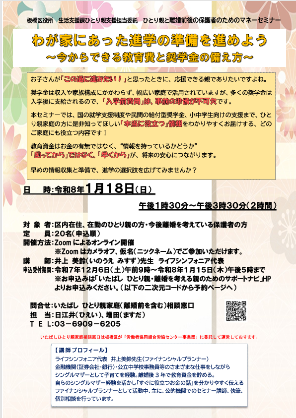 母子世帯養育援助金(公益財団法人 重田教育財団) 募集期間 2025年11月1日~12月26日必着 母子のひとり親家庭が対象の返済不要の援助金のご案内です。 支給額は、6歳以下のお子様1名につき20万 …